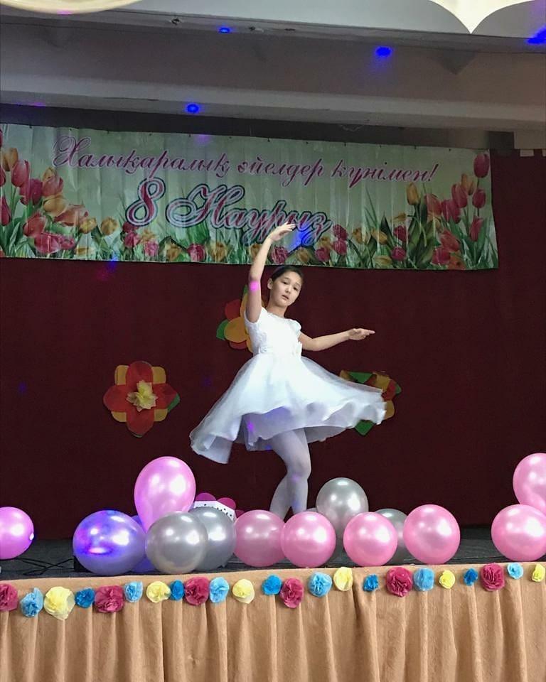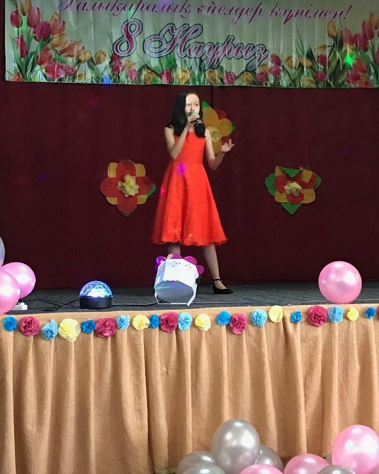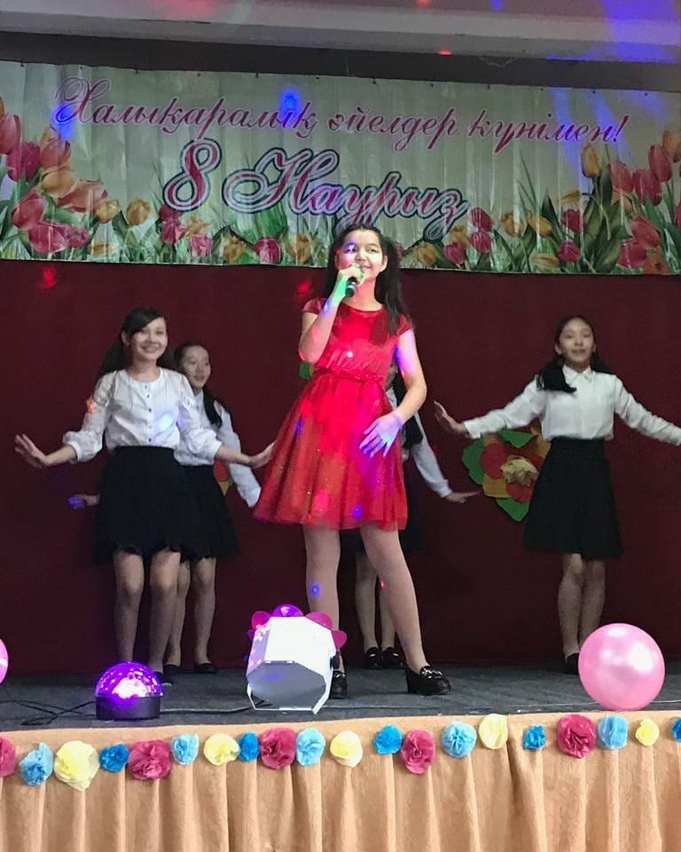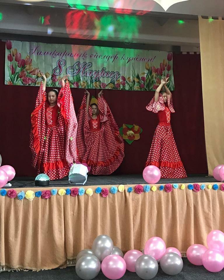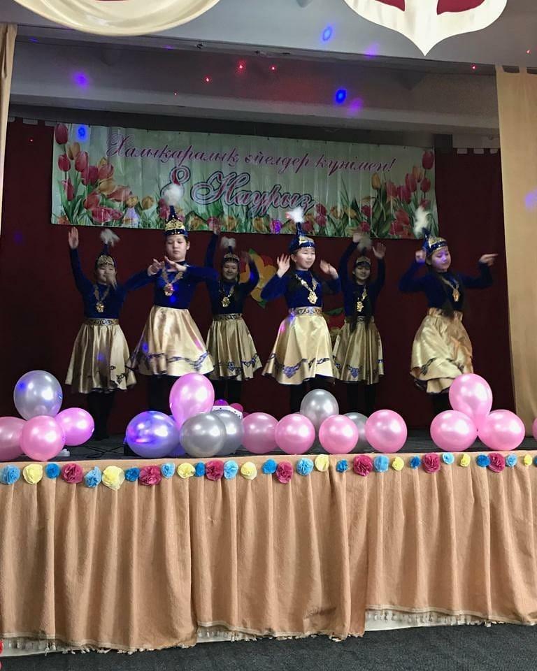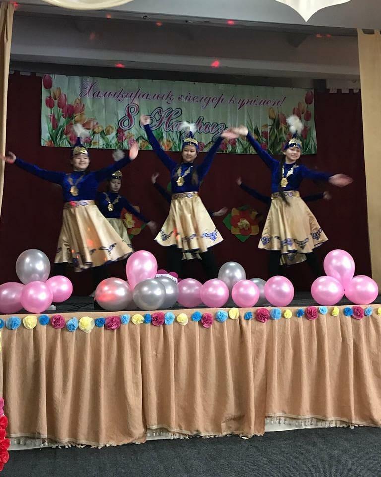 Мектебіміздің өнерлі оқушылары өнерден тарту жасап, ерекше көңіл-күй сыйлады. Атап айтқанда, «Әке-Ана», «Көктем келді», «Весна», «Қазақ қызы» әндері кештің сәнін келтірсе, Испан биі, Қазақ биі, Балет және Спортты балды би жиналған қауымның ыстық ықыласы мен қошеметіне бөленді. Осындай тамаша кештің куәсі болған – қыздар қауымы мерекелік кешке дән риза болды.. Сахна мерекеге сай безендіріліп, мерекелік кештің әсерін арттыра түсті.