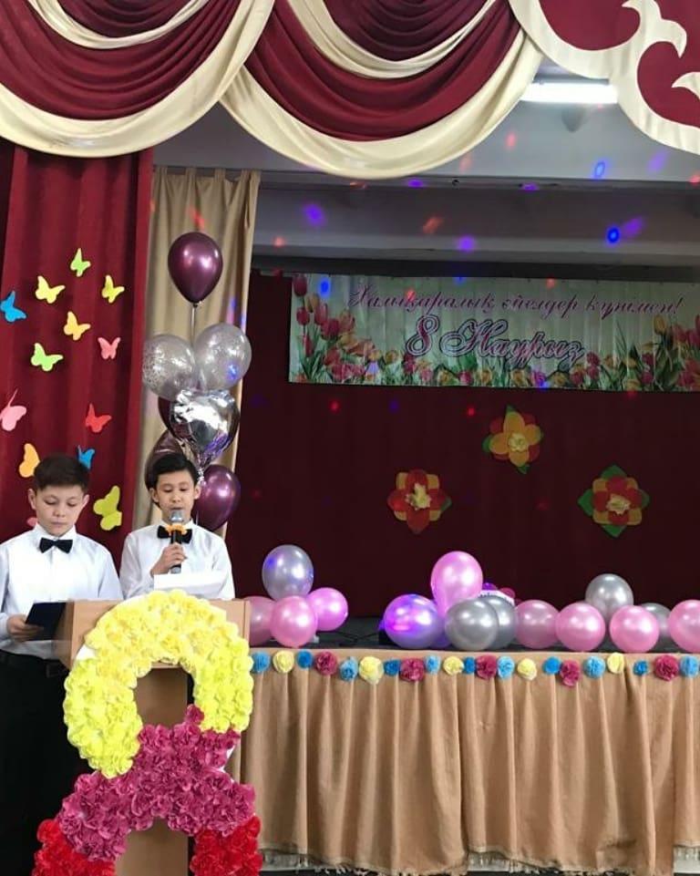 8 наурыз – Халықаралық әйелдер күніне орай 5-7 сынып оқушыларының қатысуымен «Сарқылмайтын жылылық, Ана аты – ұлылық» атты мерекелік кеш өткізілді. Мектептің барша әйелдер қауымына арналған мерекелік бағдарламада сөз алған мектеп директоры Алма Медетовна өзінің жылы лебізін білдіріп, қыз-келіншектер мерекесінің шуақты көктем күндерімен ілесіп келуінің тегін еместігін атап өтті.
