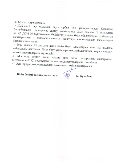 01 қыркүйек 2022 0 1 2 3 4 5 Орта білім беру ұйымдарында 2022-2023 оқу жылының басталуын, ұзақтығын және каникул кезеңдерін айқындау туралы