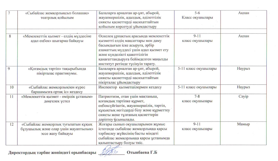 2019-2020 оқу жылында арналған мектепішілік ерікті «Адал ұрпақ» клубының жұмыс жоспары