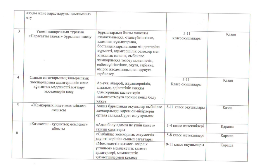 "Адал ұрпақ" клубының 2022-2023 оқу жылына арналған іс-шаралар жоспары