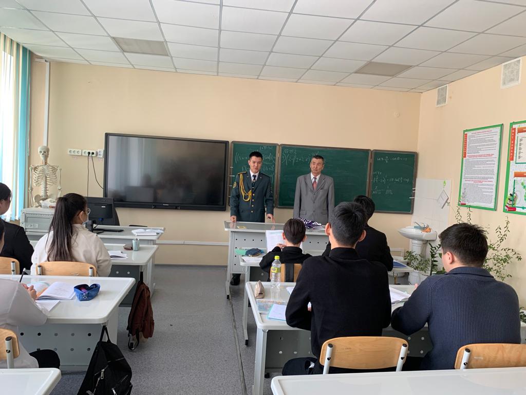Гимназиямызда Сағадат Нұрмағанбетов атындағы Құрлық әскерлерінің Әскери институтынан Қуанышбекұлы Қуат 9-11 сынып және "Жас сарбаз" сынып оқушыларына оқу орыны туралы түсіндірме жұмыстарын жүргізді.