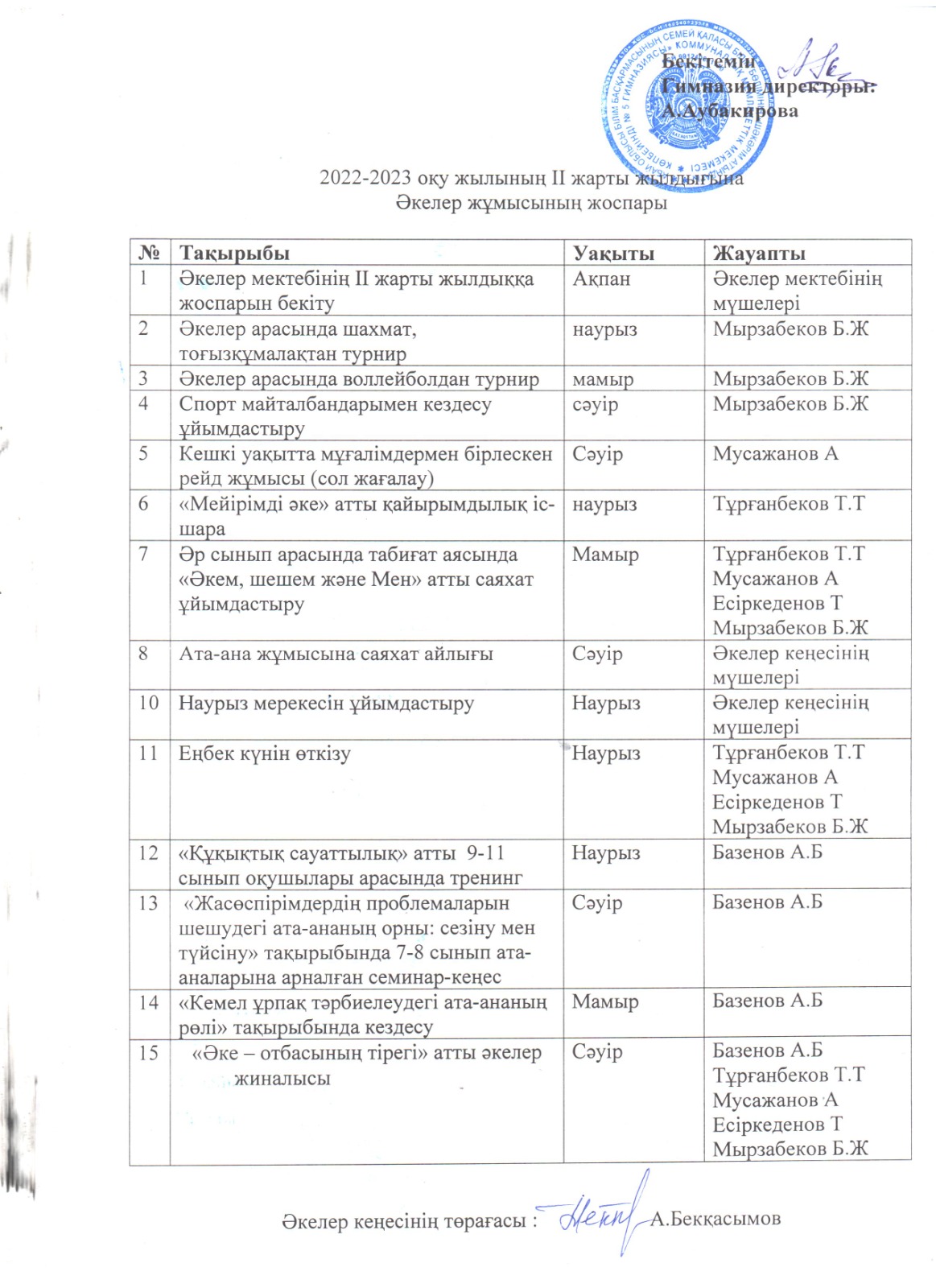 23 ақпан 2023 0 1 2 3 4 5 2022-2023 оқу жылының ІІ жарты жылдығының аналар мен әкелер жұмысының жоспары