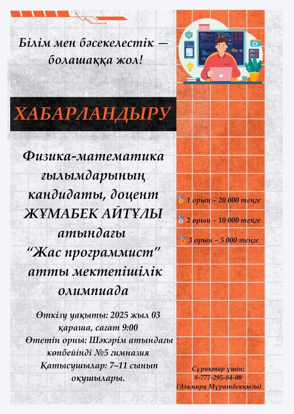 Хабарландыру, мектепішілік “IT Land SHAKARIM” бағдарламалау клубына қабылдау