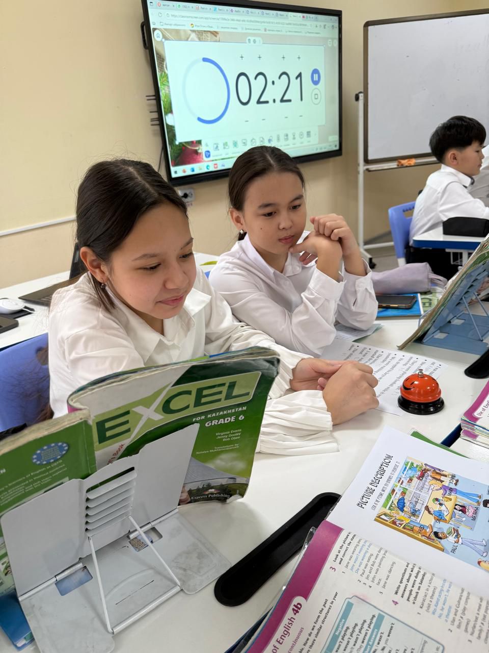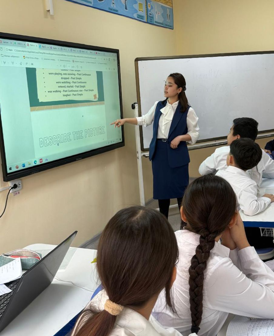 03.12 күні «Ағылшын тілі апталығы» аясында 6 «В» сыныбында ашық сабақ өткізілді. Сабақтың тақырыбы: Past Simple and Past Continuous болды. Сабақ барысында оқушылар белсенділік танытып, жаңа білімді қызығушылықпен игерді. Интерактивті әдістер қолданылып, топтық жұмыстар мен шығармашылық тапсырмалар арқылы оқушылардың ойлау қабілеті, өз ойын еркін жеткізу дағдылары дамытылды.