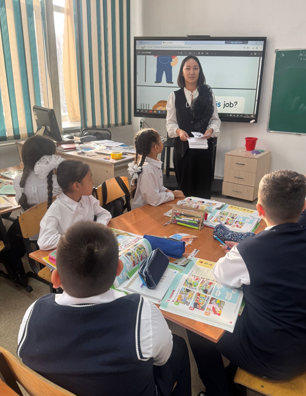 Пән мұғалімі: Белгібаева М.Д. 🔹 “Ағылшын тілі апталығы” аясында 4 “Ә” сыныбында ашық сабақ өткізілді. Сабақтың тақырыбы : “What do you do?”.Оқушылар белсенді қатысып, тапсырмаларды үлкен қызығушылықпен орындады.