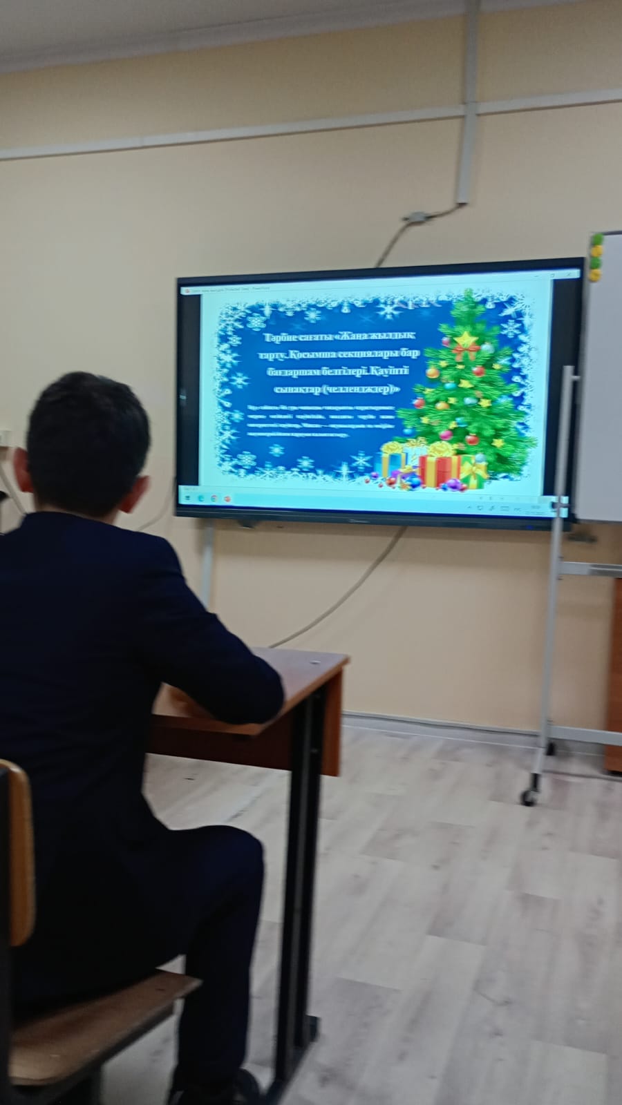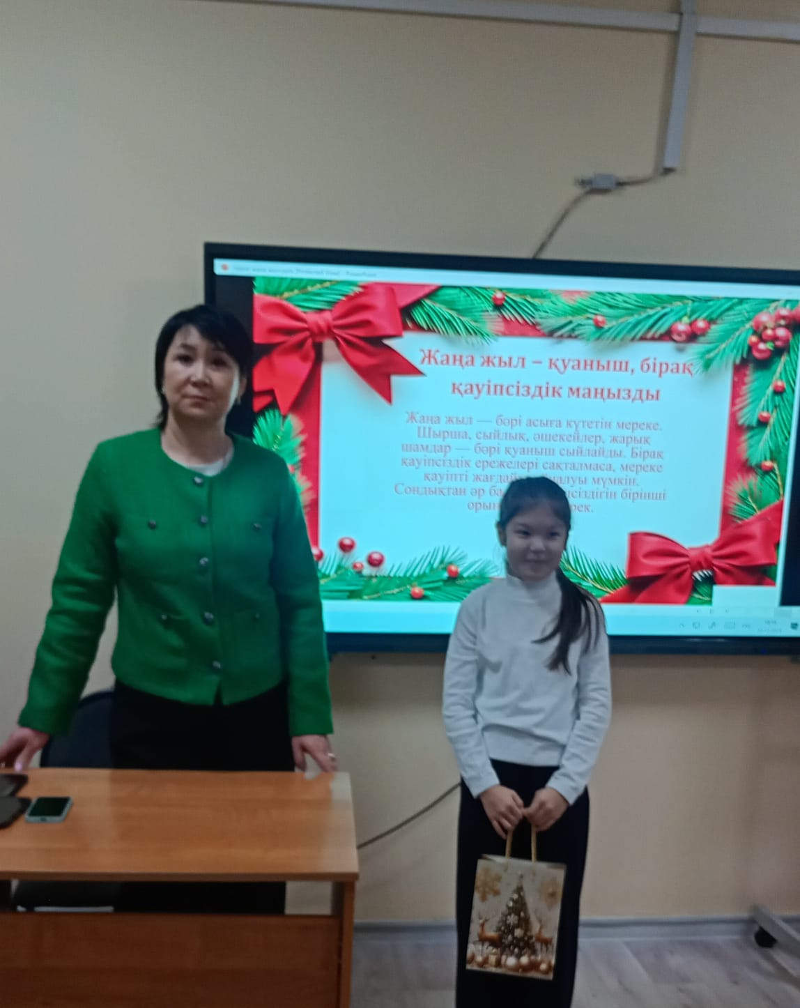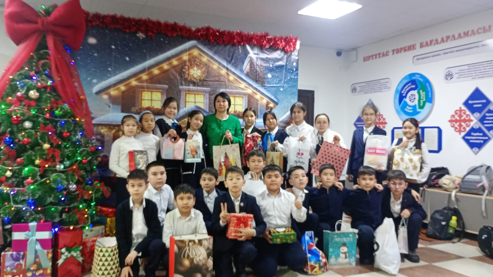 Тәрбие сағаты барысында оқушылар бір-біріне арнайы дайындаған шағын сыйлықтарын тарту етті. Бұл сәт балалардың бір-біріне деген сыйластығын, достық пен қамқорлық қарым-қатынасын нығайтты.Сыйлықтар алмасу арқылы оқушылар мерекелік көңіл-күймен қатар, қуаныш пен мейірімділікті бөлісе білді.
