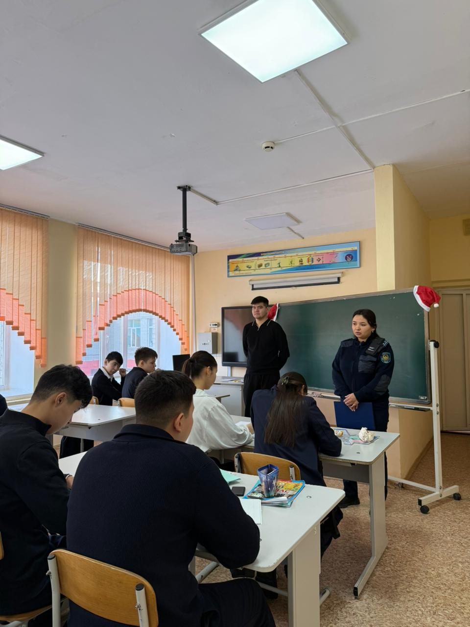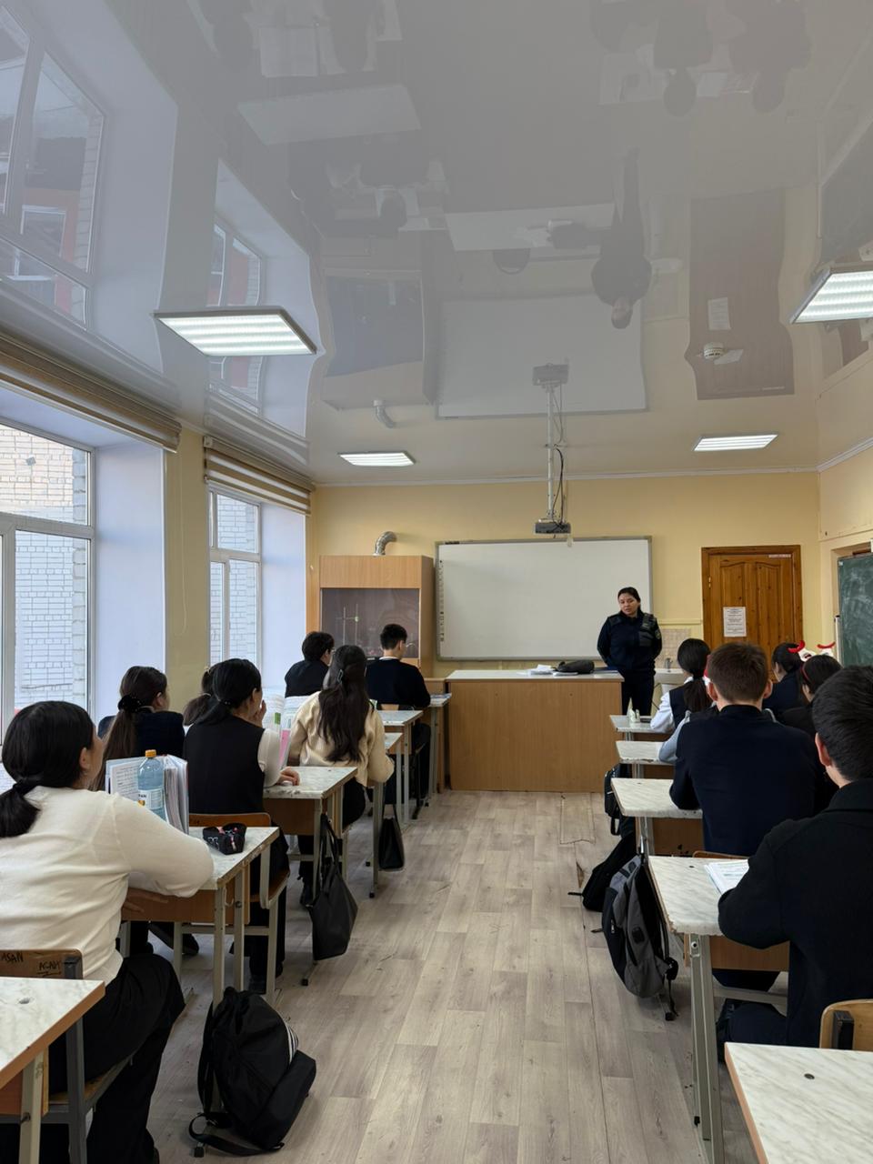 2025 жылдың 24 желтоқсанында Абай облысы ПД Семей қаласы Әуезов ПБ ҚҚБ инспекторы, полиция лейтенанты Б.Е. Ергараева 9-11 сыныптар арасында «Жол көлік оқиғаларының деңгейін төмендету»,«Құқық бұзушылықтың алдын алу», «Қауіпсіз жаңа жыл», «Суицид және суицидтің алдын алу» тақырыбы бойынша дәріс жүргізді.