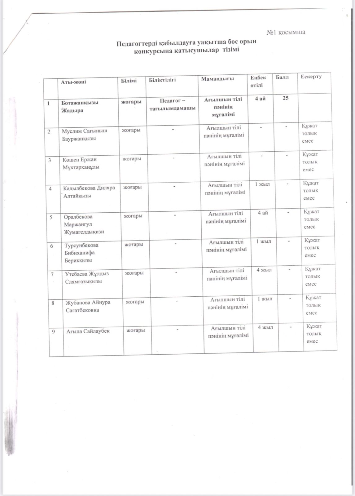 БОС ЛАУАЗЫМДЫҚ КОНКУРСТАР