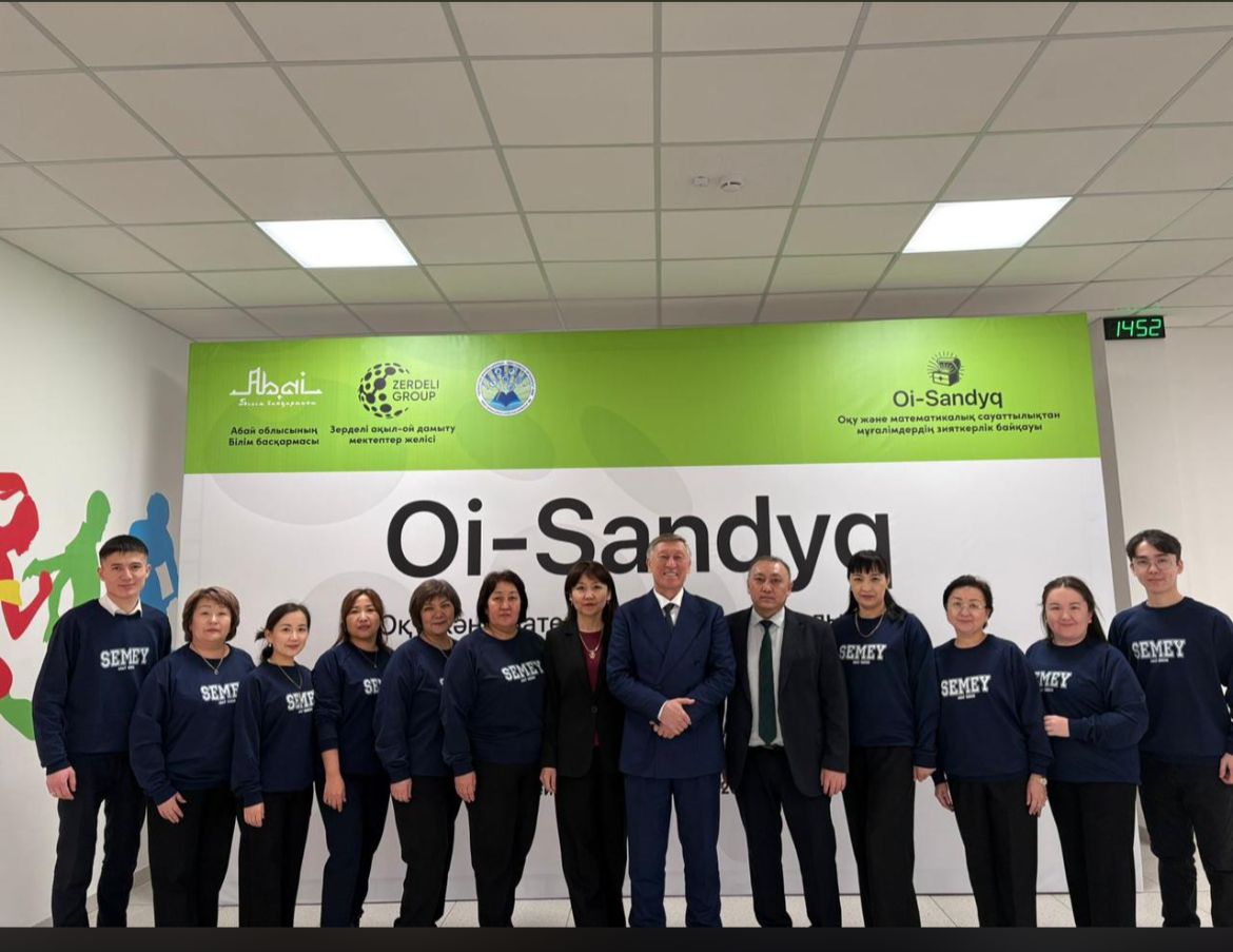 Бүгін қаламызда облыстық “Ой-сандық” оқу және математикалық сауаттылықтан мұғалімдердің зияткерлік байқауы өтті. Байқауда облыс көлемі бойынша 14 команда, 140 мұғалім сайысқа түсті. Білім додасы өте тартысты өтті. Абай облысы білім басқармасы мен “Зерделі” ақыл-ой дамыту мектебі” ЖШС ұйымдастырған сайысқа гимназиямыздан қазақ тілі мен әдебиеті пәні мұғалімі Д.Т.Сулейменова қатысып, жұптық сайыста жүлделі 3-орынды иеленсе, командалық сайыста Бас жүлдені қанжығасына байлады. Құттықтаймыз!
