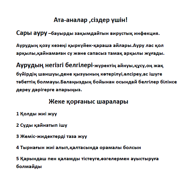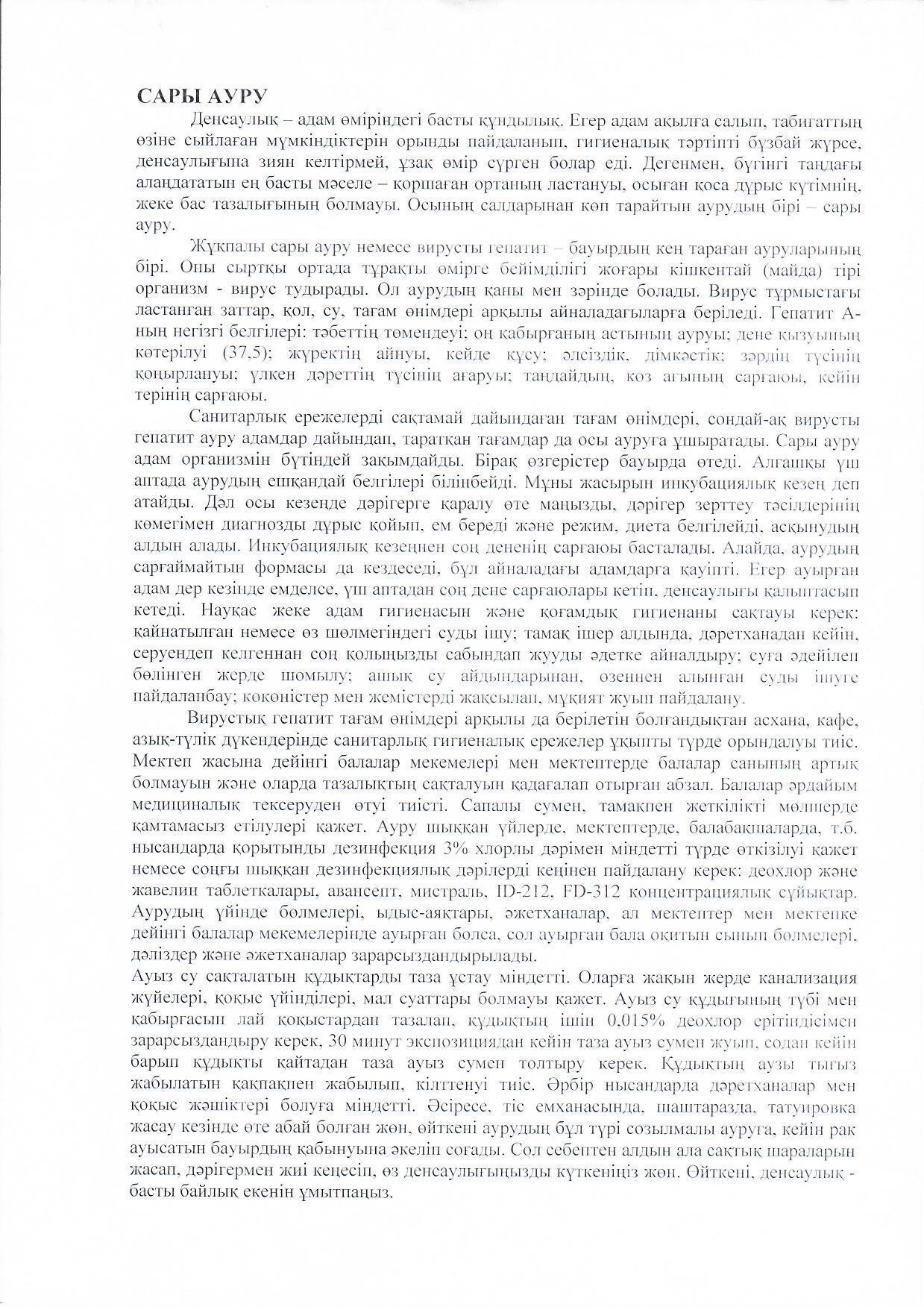 » Сары ауру - инфекциялық ауруды алдын алу іс шаралары