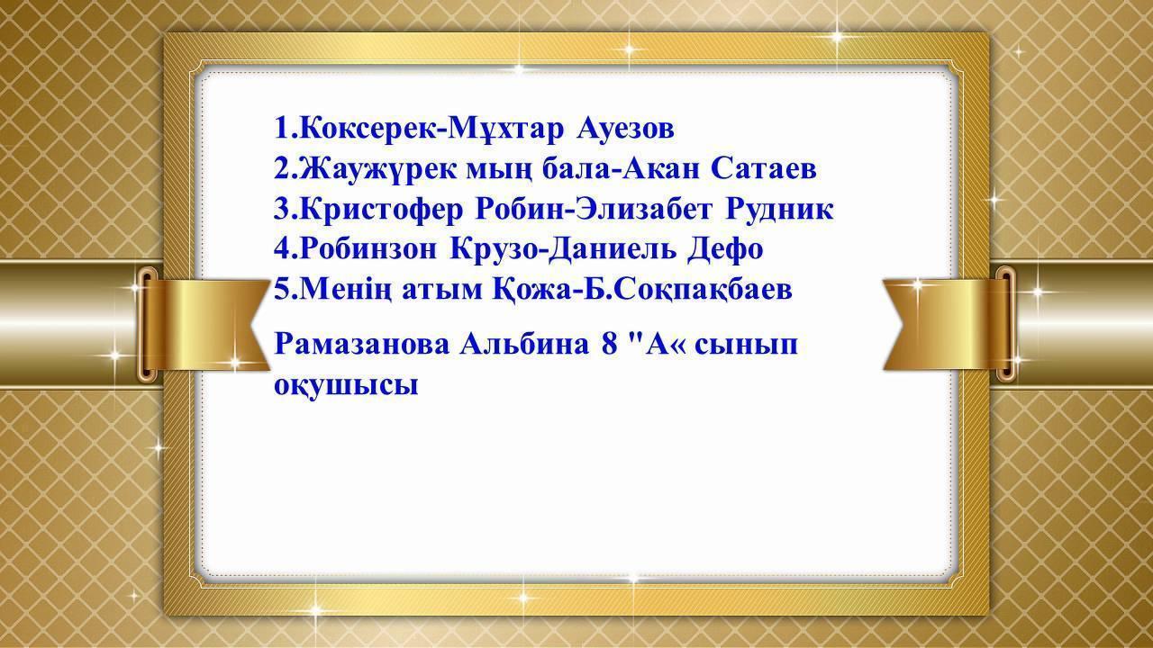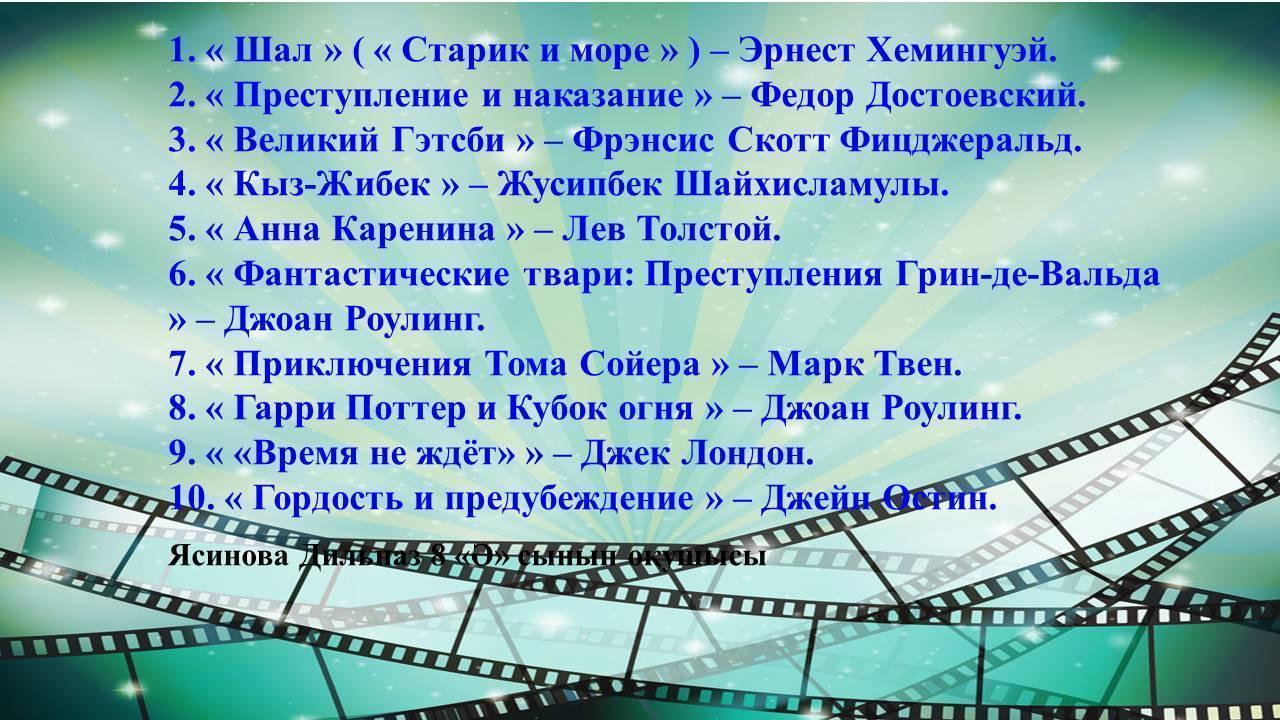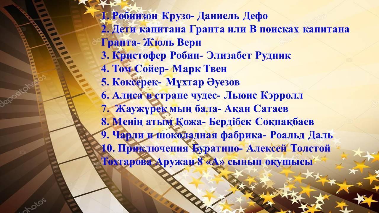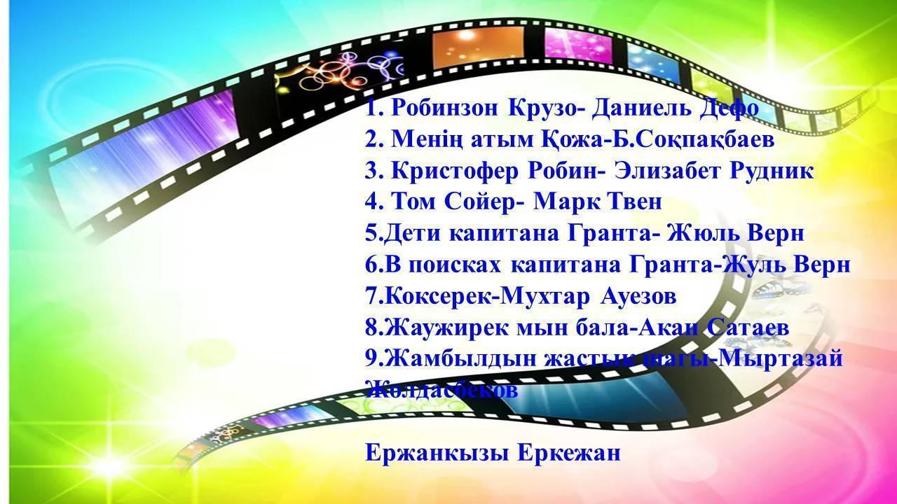 23 сәуір 2020 20 1 2 3 4 5 Көркем шығарма желісі бойынша түсірілген 10 кинофильмді атаңыз атты Сауалнама