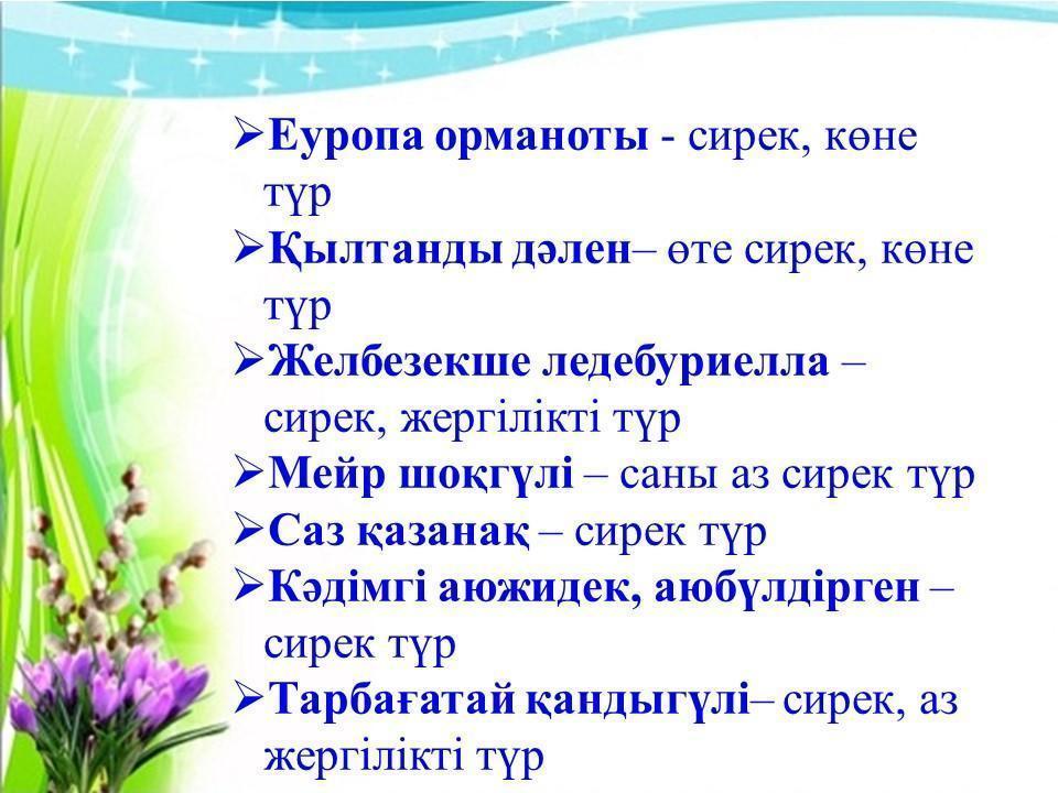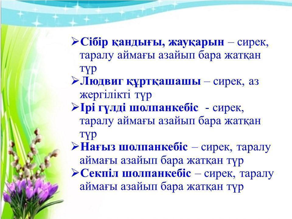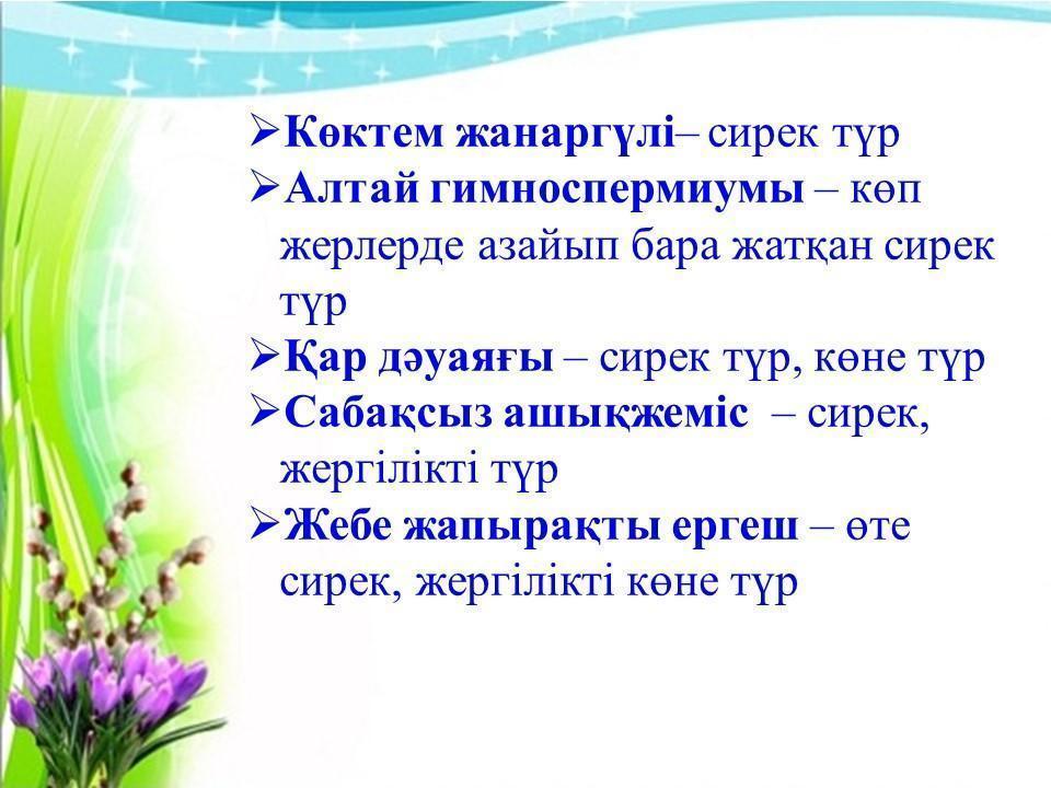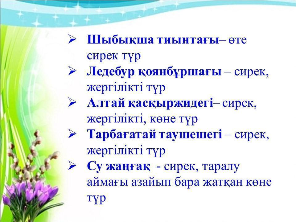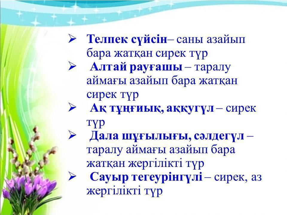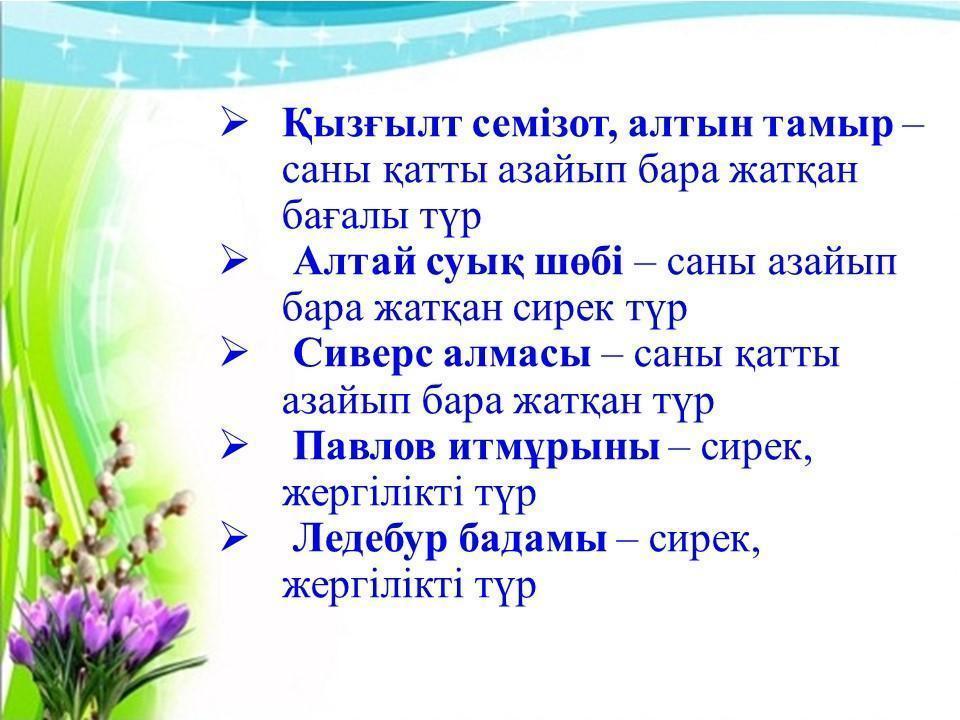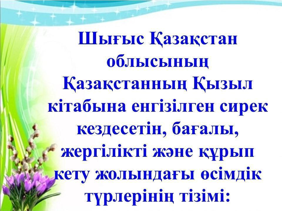 14 қазан 2020 0 1 2 3 4 5 Қазақстанның Қызыл кітабына енгізілген Шығыс Қазақстан облысының өсімдіктері