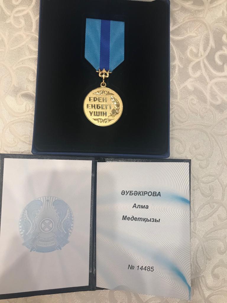 Қазақстан Республикасының Президенті Қасым - Жомарт Кемелұлы Тоқаевтың 2021 жылғы 02 желтоқсандағы Жарлығы бойынша "Ерен еңбегі үшін" медалімен мектебіміздің директоры Аубакирова Алма Медетқызы марапатталды. Мектеп ұжымы мен шәкірттеріңіз Сізді шын жүректен құттықтайды. Білім жолында әлі де алатын жетістіктеріңіз бен мараптыңыз көп болсын. Еңбек жолыңызға сәттілік тілейміз.
