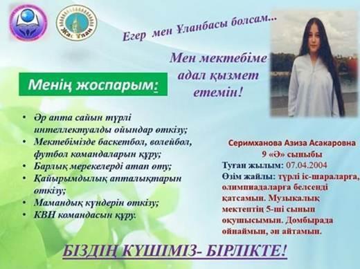 Шәкәрім атындағы үш тілде оқытатын көпбейінді гимназиясының «Жас Ұлан» ұйымы және белсенді оқушылар арасынан Ұланбасы болуға үміткерлер анықталып 3 кезеңнен тұратын Ұланбасы сайлауына қатысты.