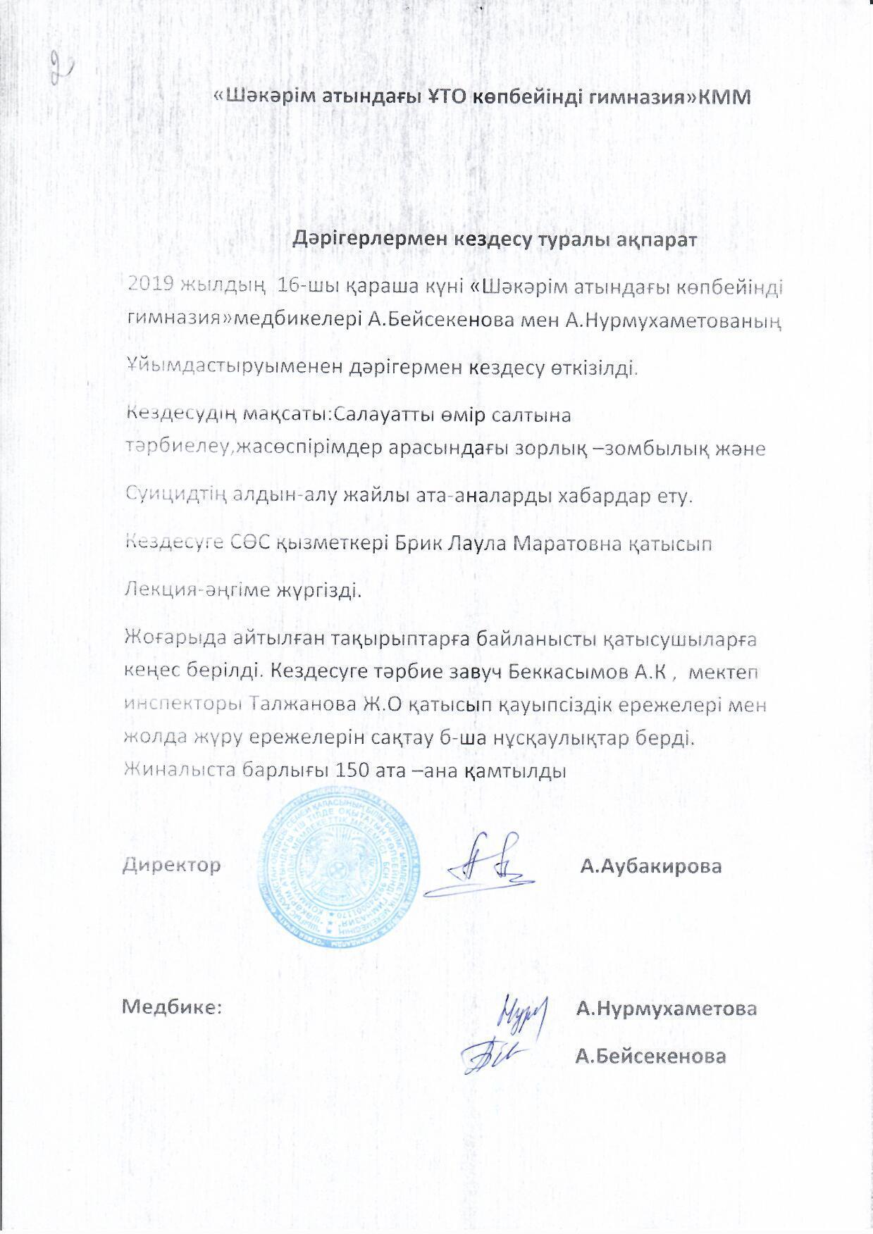Дәрігерлермен кездесу