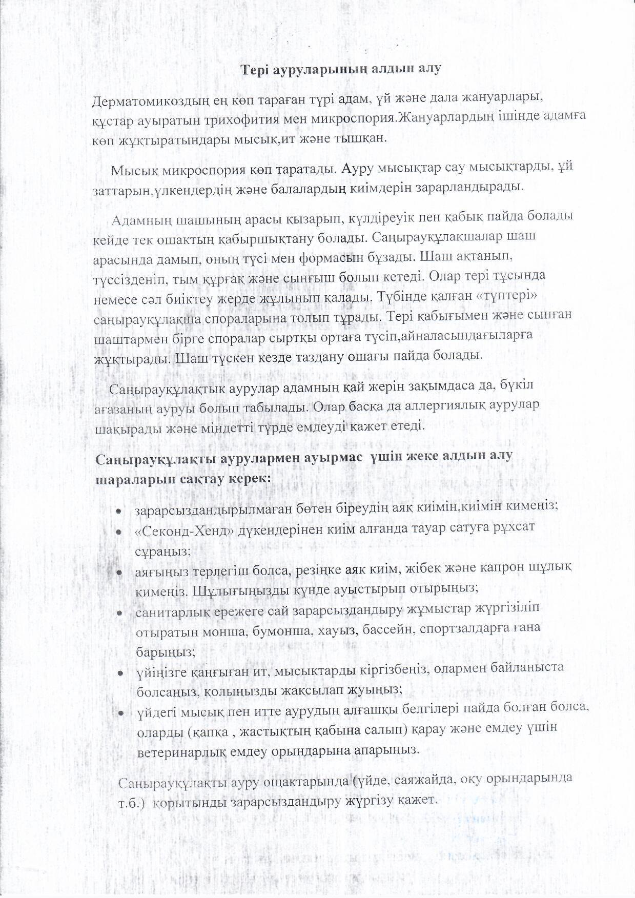 Тұмау және жіті респираторлық вирусты жұқпалардың алдын алу шараларын ұйымдастыру