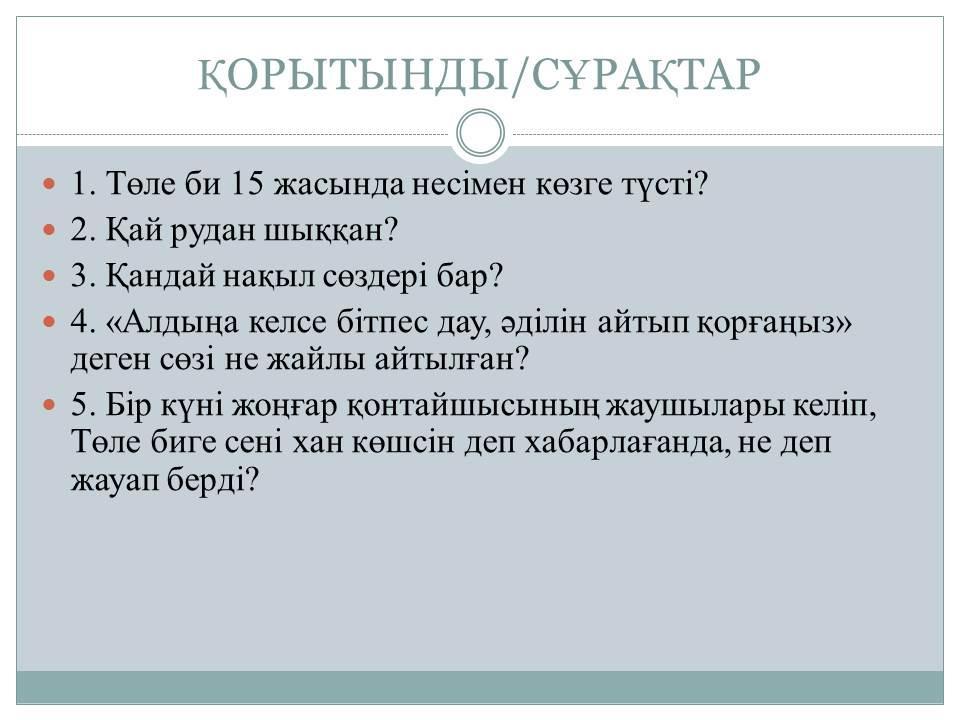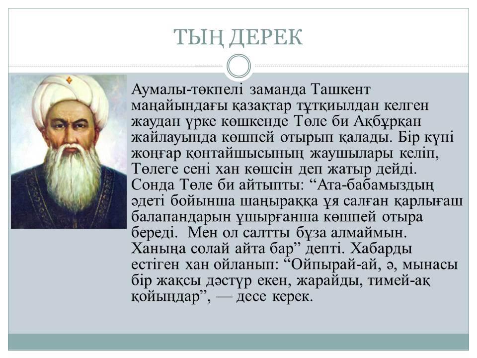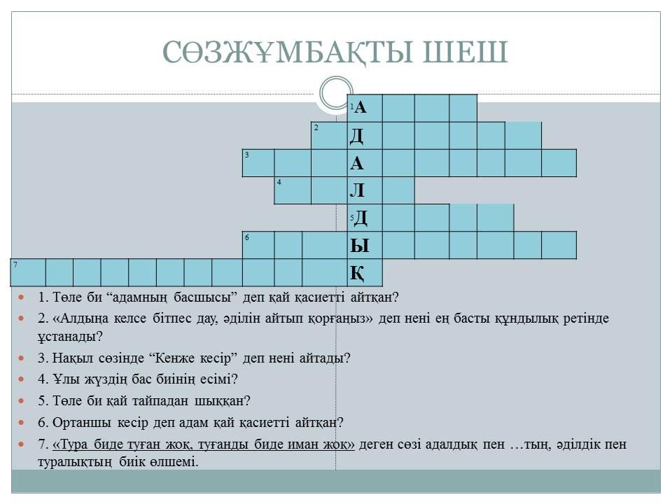 «ТУРАЛЫҚТЫ ТҰҒЫР ЕТКЕН ТӨЛЕ БИ» АДАЛДЫҚ САҒАТЫ