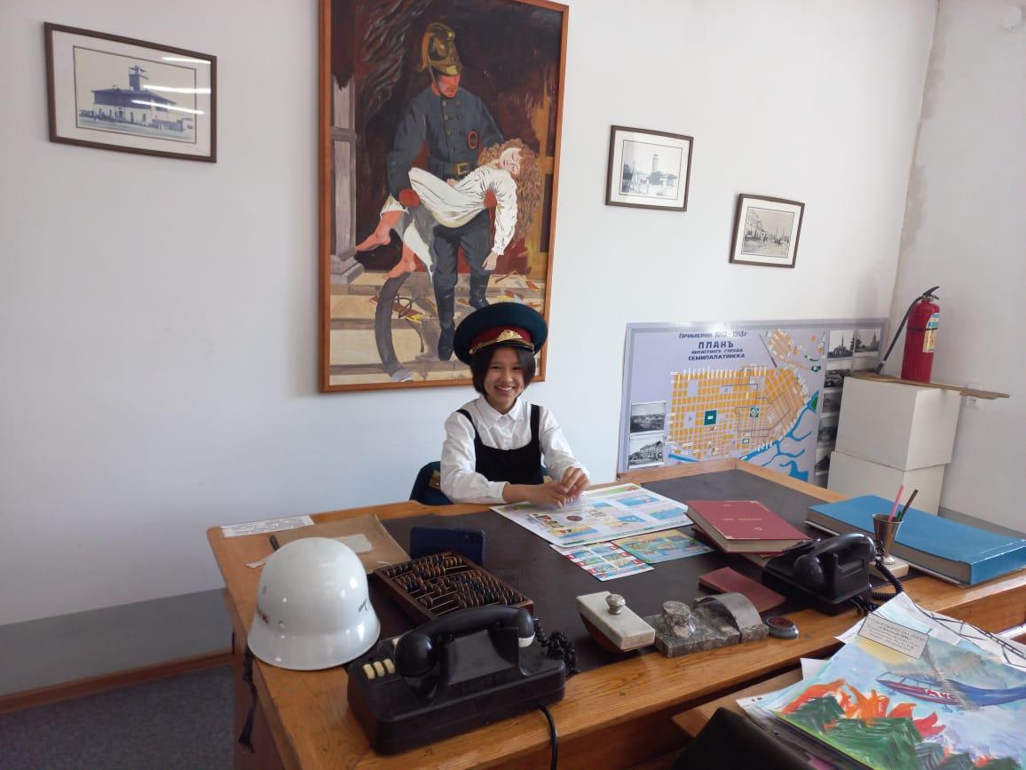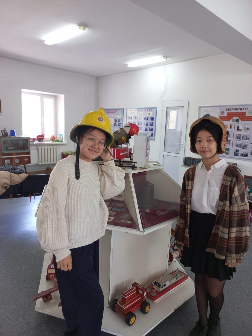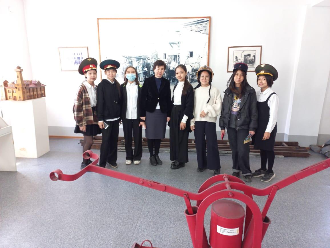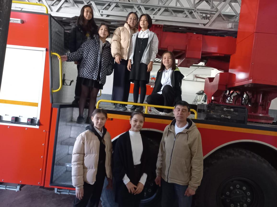 Музей меңгерушісі Фархат Еркимбев балаларды музейдің құнды жәдігерлерімен таныстырды. Музейдің әр бұрышы тарихтан сыр шертеді. Басқа музейлерден ерекшелігі жәдігерлерді қолмен ұстап көруге болатындығы балалардың қызығушылығын тудырды. Балаларға 50-дей мемлекеттен әкелінген каскалар топтамасы ерекше қызық болды. Төтенше жағдайда іске қосылатын техникалық көліктерді оқушылар өз көздерімен көріп, қызметімен танысты. Сонымен қатар, бөлімшеде балаларға арналған үйірменің жұмыс жасайтындығы туралы хабарлама берді. Экскурсия соңында «Өрт- тілісіз жау» және әр қашан қауіпсіздік ережесін естен шығарму керектігін ескертті. Балалар осындай қызықты мағлұматтармен таныстырған Ф. Еркимбаевқа ризашылықтарын айтты.