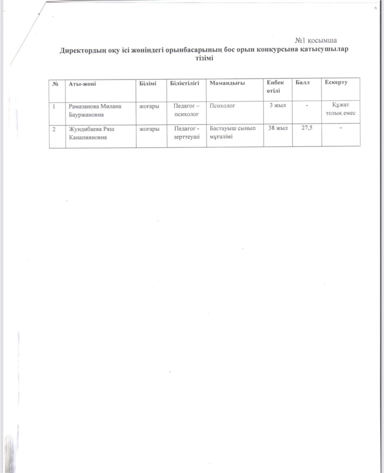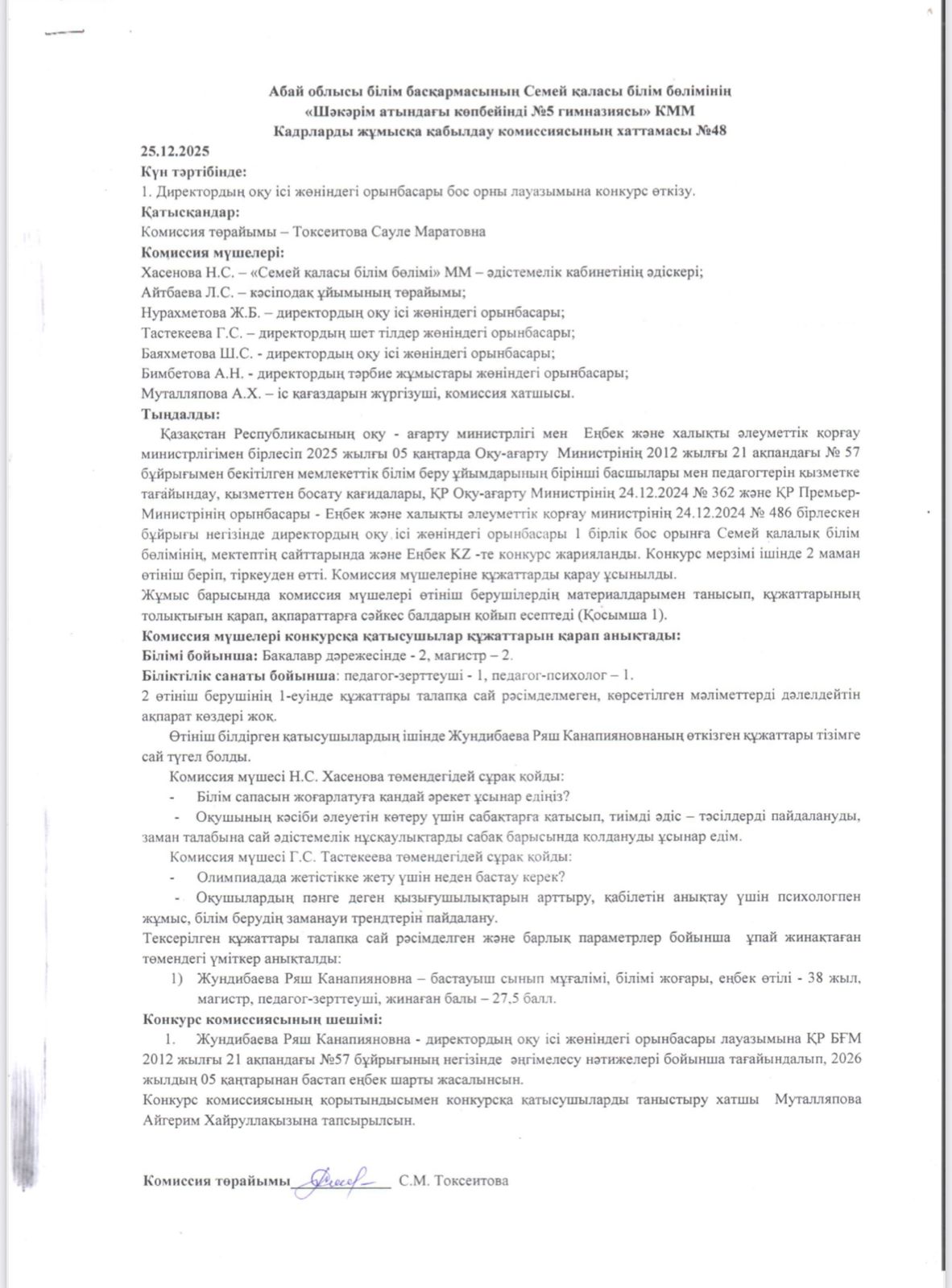 Бос орын конкурсының хаттамасы.
