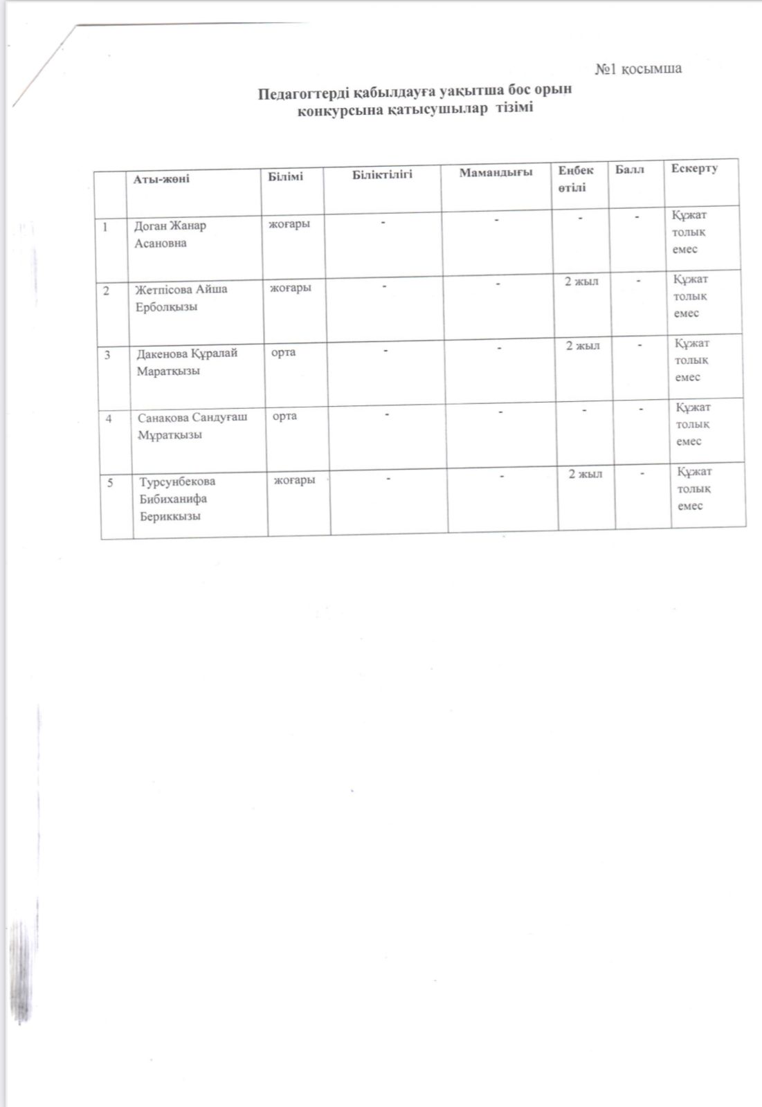 Бос орын конкурсының хаттамасы.