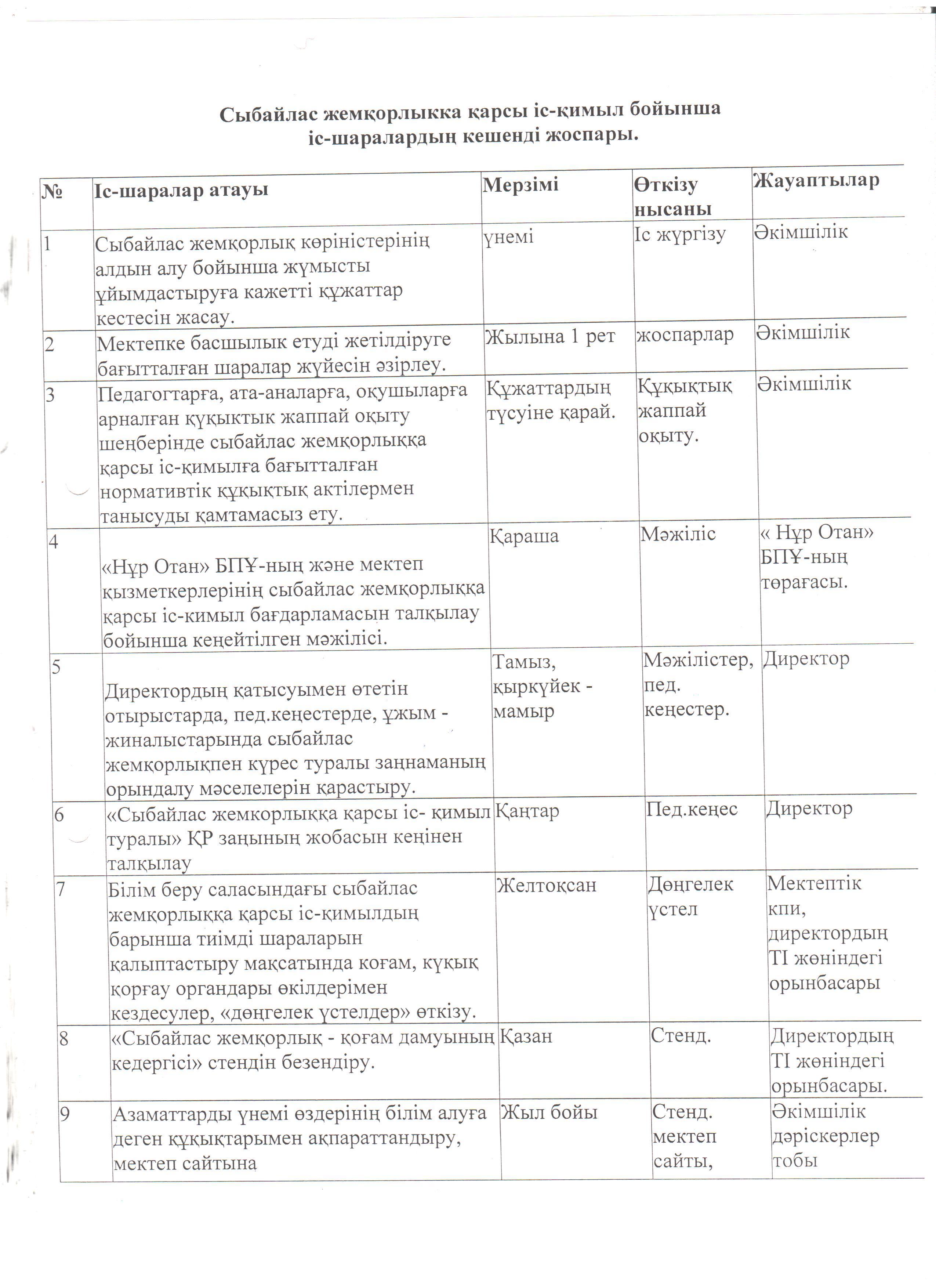 » Сыбайлас жемқорлыққа қарсы іс-қимыл бойынша іс шаралар жоспары