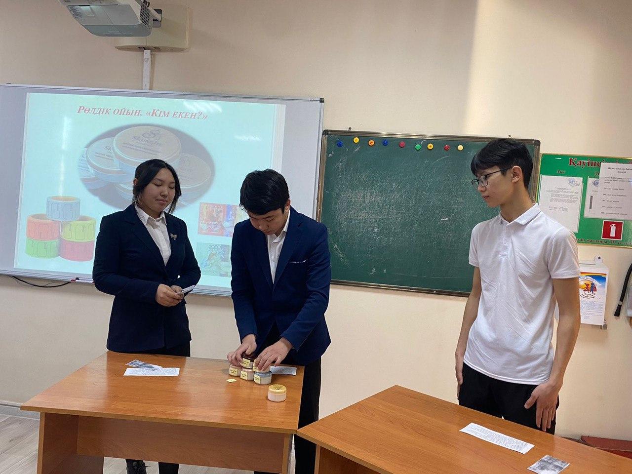 15.04.2022 жылы 9 «Ә» сыныбында «Біз тұтынушы ретінде өз құқығымызды білеміз бе?» деген такырыпта құқық негіздері пәнінен ашык сабақ өтті. Сабақтың мақсаты оқушыларды тұтынушының құқықтық жағдайымен таныстыру, нарық субъектілері арасындағы құқықтық қатынастардың негізгі принциптерін ашу болды. Сыныпты «Өндіруші», «Сатушы», «Тұтынушы» деген топтарға бөле отырып, оқушыларды нарықтың негізгі субъектілерімен таныстырды. Мұғалім осы сабақ арқылы адамның күнделікті өмірінде кездесетін түрлі жағдайларды рөлдік ойындар мен жағдаяттар арқылы көрсете білді. Осы арқылы оқушыларға өз құқықтарын қалай қорғау керек екендігін түсіндіре отырып, өздеріне тұжырым жасатты. «Нарықтың патшасы кім?» екенін анықтау мақсатында оқушыларға проблемалық сұрақ қойылып, жас-жеткіншектердің пікірі тыңдалды. Әлеуметтік ғылым терминдерімен жұмыс жасай отырып, тұтынушының негізгі құқықтары анықталды, олардың түсініктері дәптерге жазылды. Мұғалім Конфуцийдің: