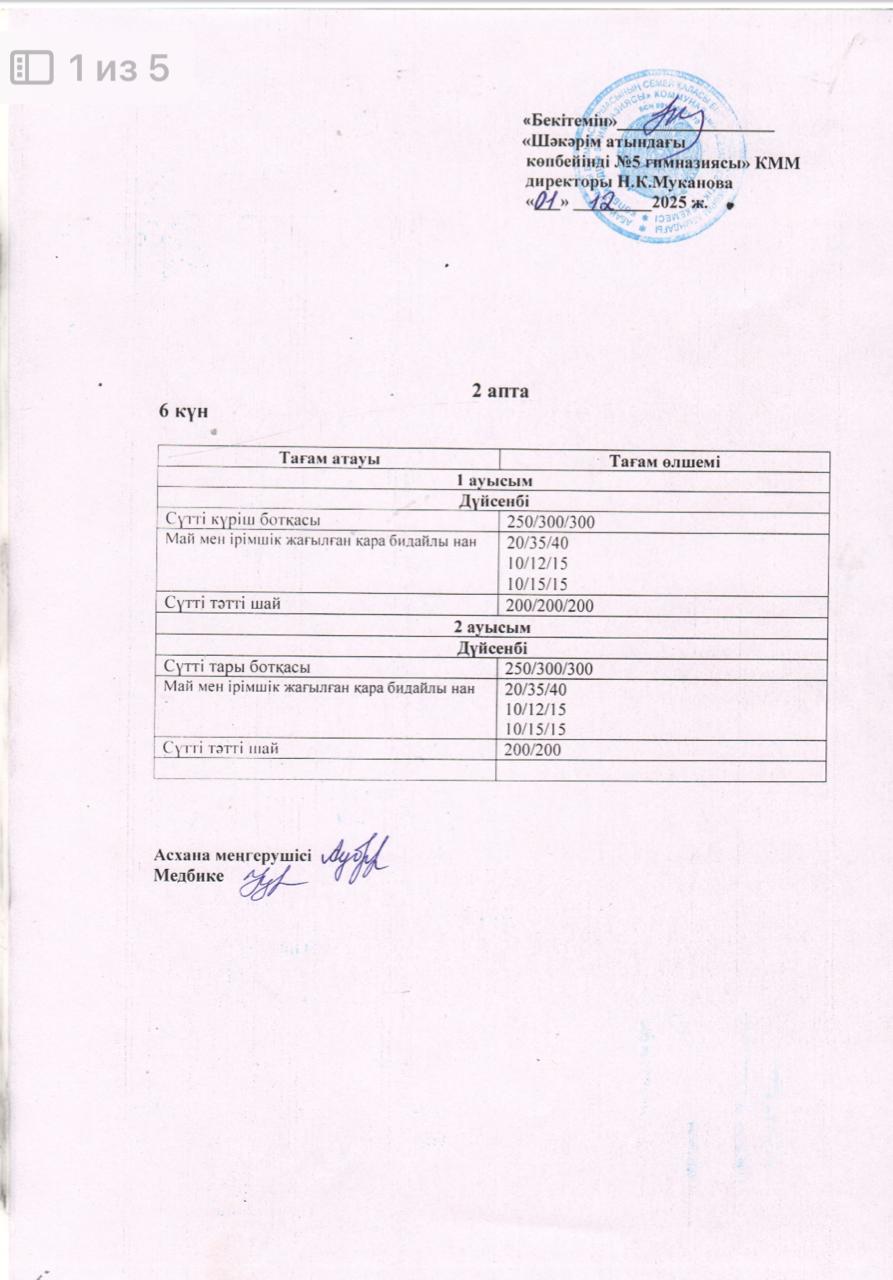 Жұма күнгі ас мәзірі.