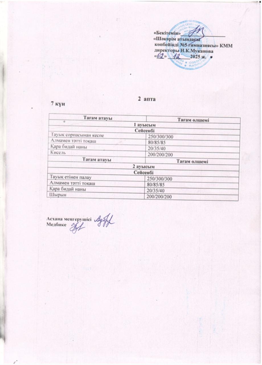 Жұма күнгі ас мәзірі.