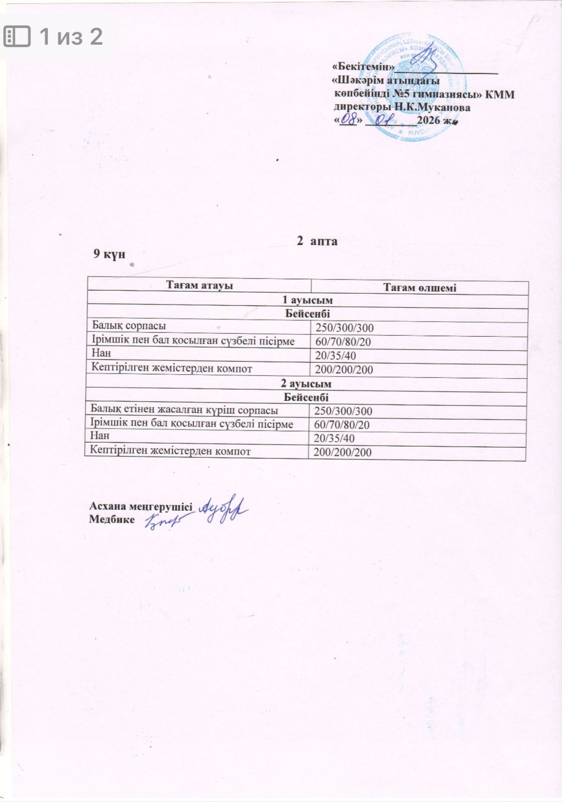 Жұма күнгі ас мәзірі.