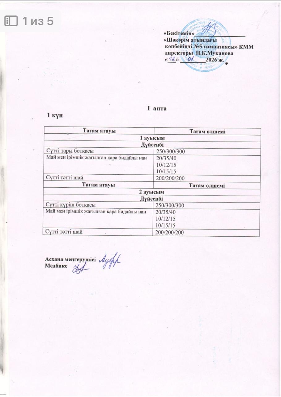 Жұма күнгі ас мәзірі.