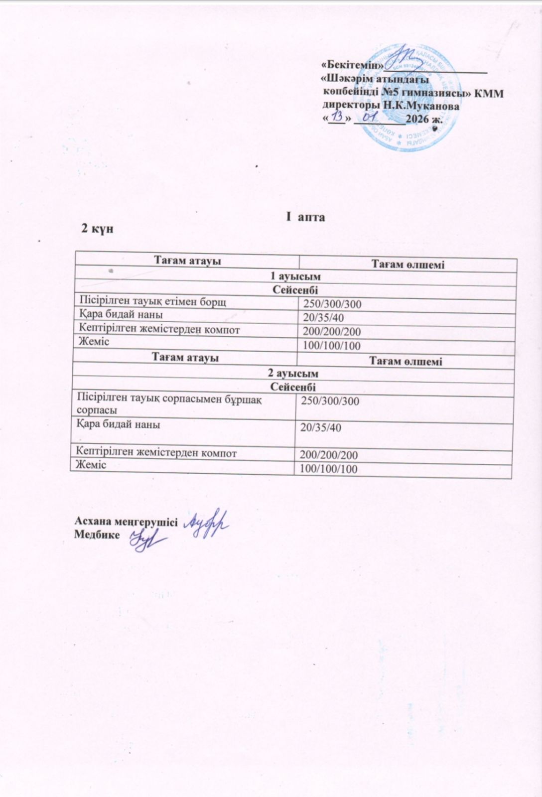Жұма күнгі ас мәзірі.