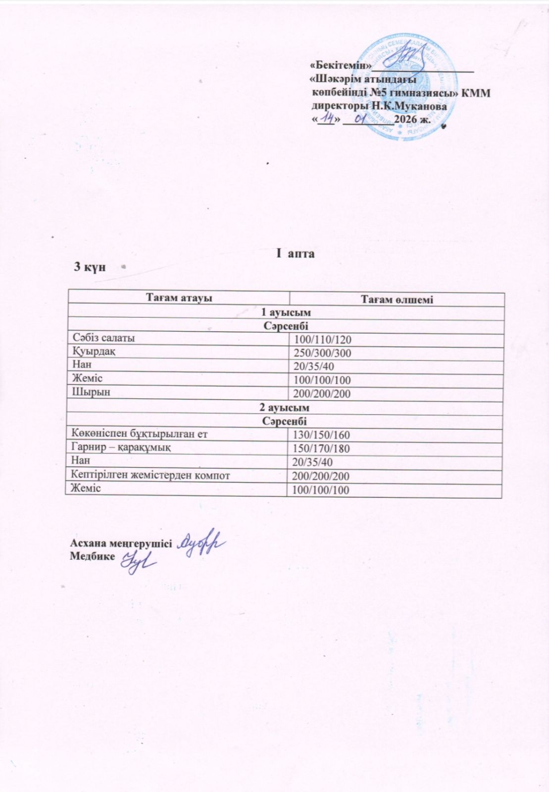 » Сәрсенбі күнгі ас мәзірі