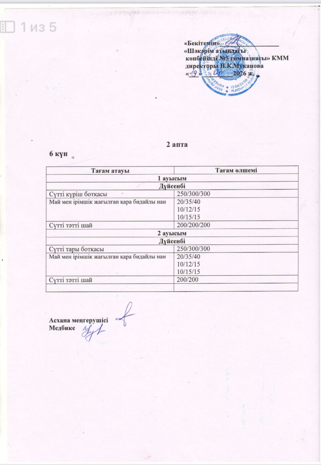 Жұма күнгі ас мәзірі.