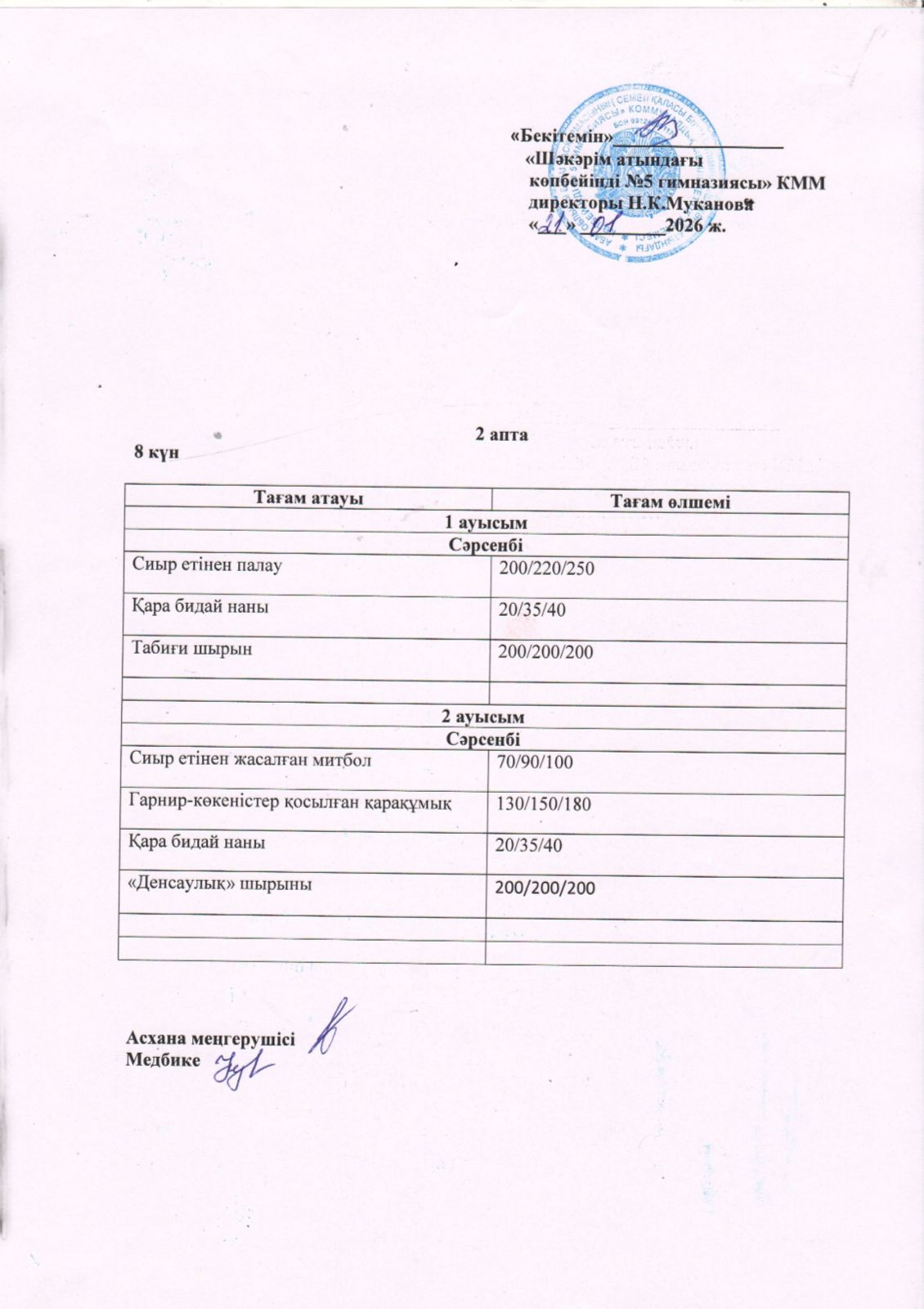 » Сәрсенбі күнгі ас мәзірі