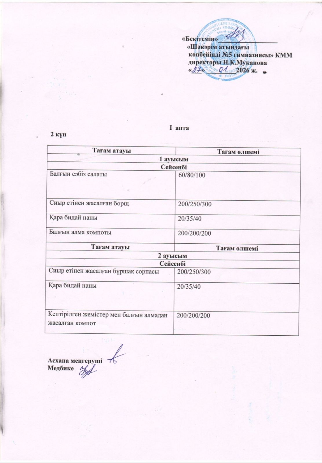 Жұма күнгі ас мәзірі.