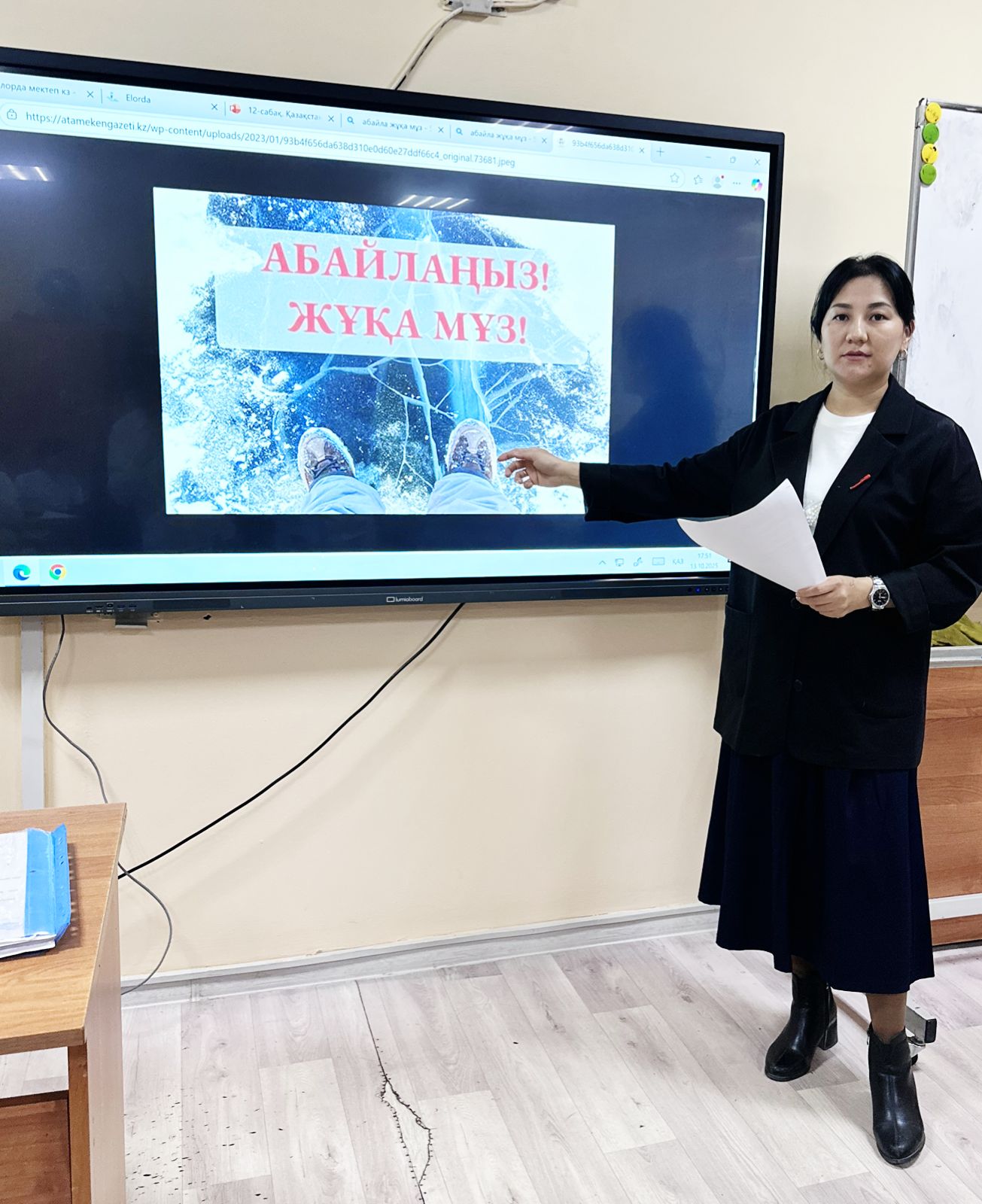 “Адал азамат” біртұтас тәрбие бағдарламасы аясында «Абайла,мұз жұқа!» атты тәрбие сағаттары өтті. 📌Тәрбие сағатының басты мақсаты – жұқа мұздың қауіптілігі туралы ескертіп, балалардың өмірі мен денсаулығын сақтау.